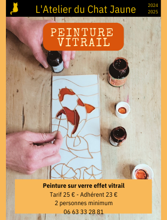 Envie de découvrir l’art de la peinture sur verre ? Rejoignez-nous #ChezYvonne pour un atelier créatif proposé par Caroline de l’association #Le Chat Jaune !
